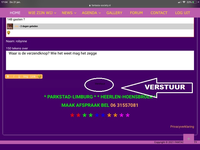 Hallo Robynne, tot zover heel goed maar DAARONDER staat weer een witte balk met daarin VERSTUUR......